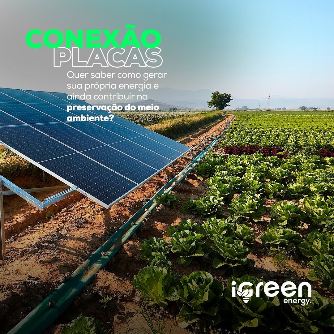 A Conexão Placas é a solução de energia solar da iGreen Energy para geração própria de energia por meio de painéis fotovoltaicos, com foco em economia, sustentabilidade e valorização do imóvel.